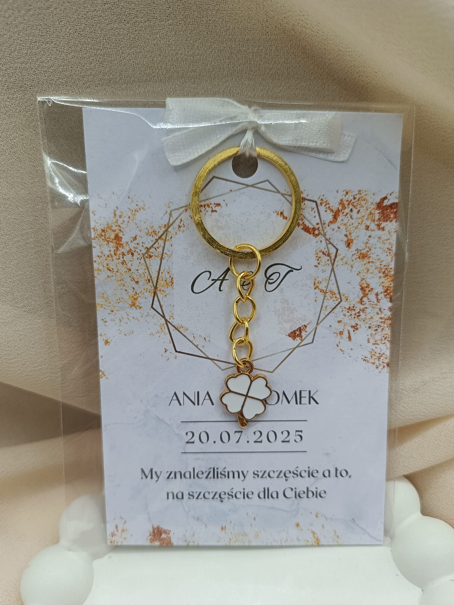 Wnętrze podziękowań zostało zaprojektowane z myślą o personalizacji, umożliwiając dodanie dedykacji, imion czy daty, co czyni ten produkt jeszcze bardziej osobistym. Tekst podziękowania został starannie dobrany, aby wyrazić głębokie uczucia wdzięczności za wsparcie i udział w wyjątkowym dniu. Breloczek został wykonany z dbałością o szczegóły.