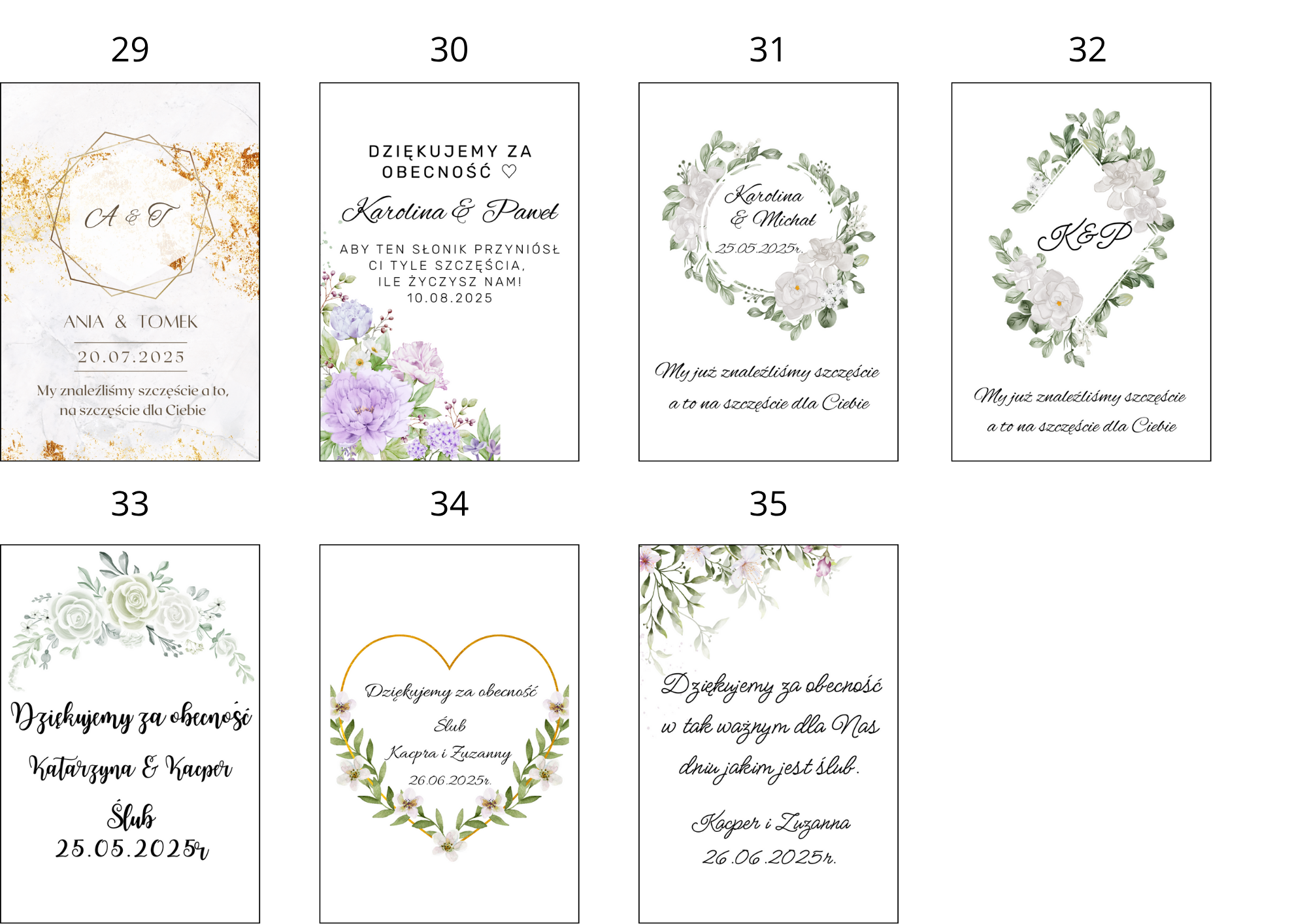 Przedstawiamy wyjątkowy produkt, który w doskonały sposób wyraża głęboką wdzięczność za obecność i udział w ważnym wydarzeniu życiowym. Nasze "Podziękowania za udział w uroczystości" to wyjątkowy sposób na wyrażenie szacunku i docenienia dla bliskich, przyjaciół czy gości, którzy uczestniczyli w istotnym dla Ciebie wydarzeniu.