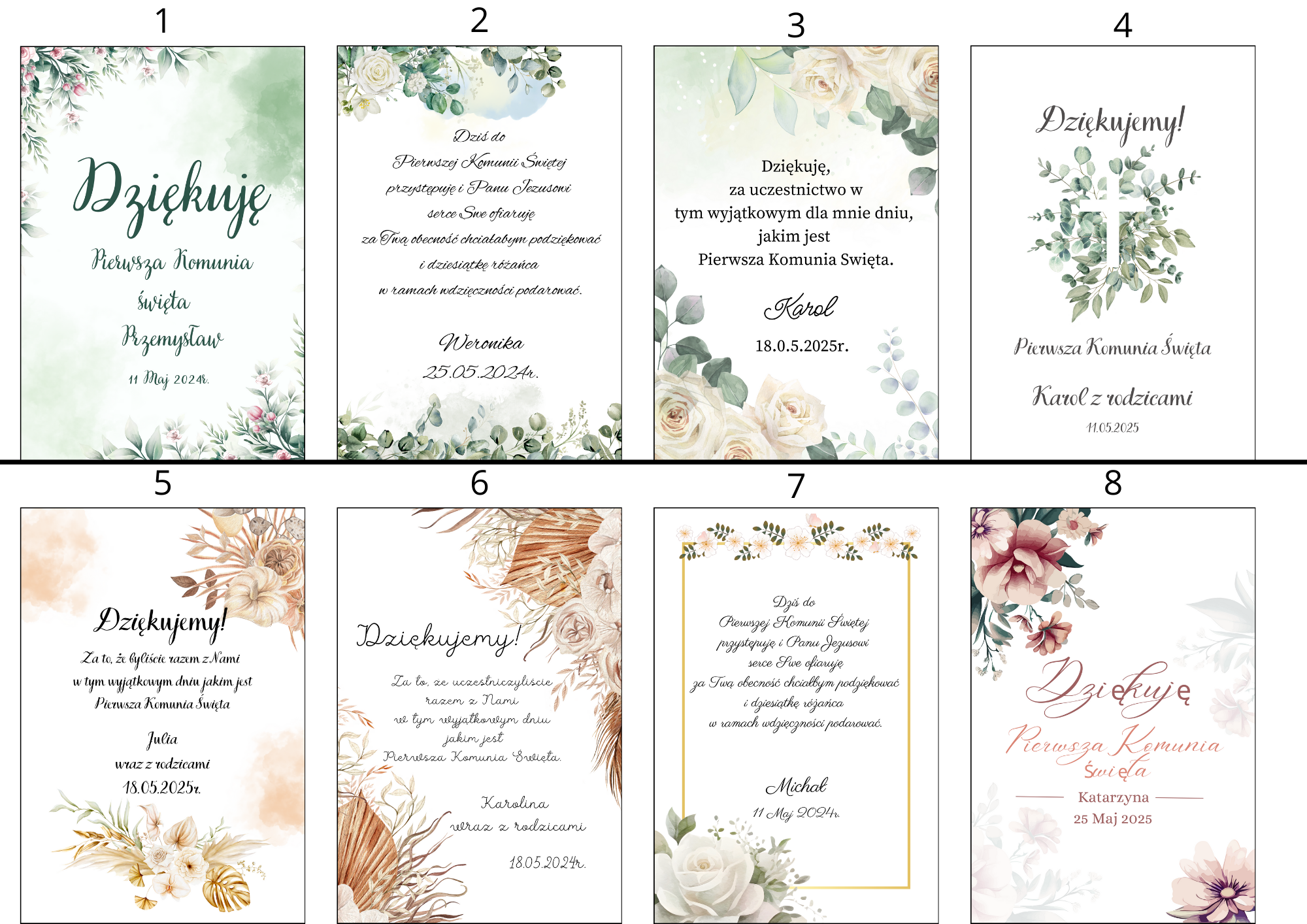 Przedstawiamy wyjątkowy produkt, który w doskonały sposób wyraża głęboką wdzięczność za obecność i udział w ważnym wydarzeniu życiowym. Nasze "Podziękowania za udział w uroczystości" to wyjątkowy sposób na wyrażenie szacunku i docenienia dla bliskich, przyjaciół czy gości, którzy uczestniczyli w istotnym dla Ciebie wydarzeniu.