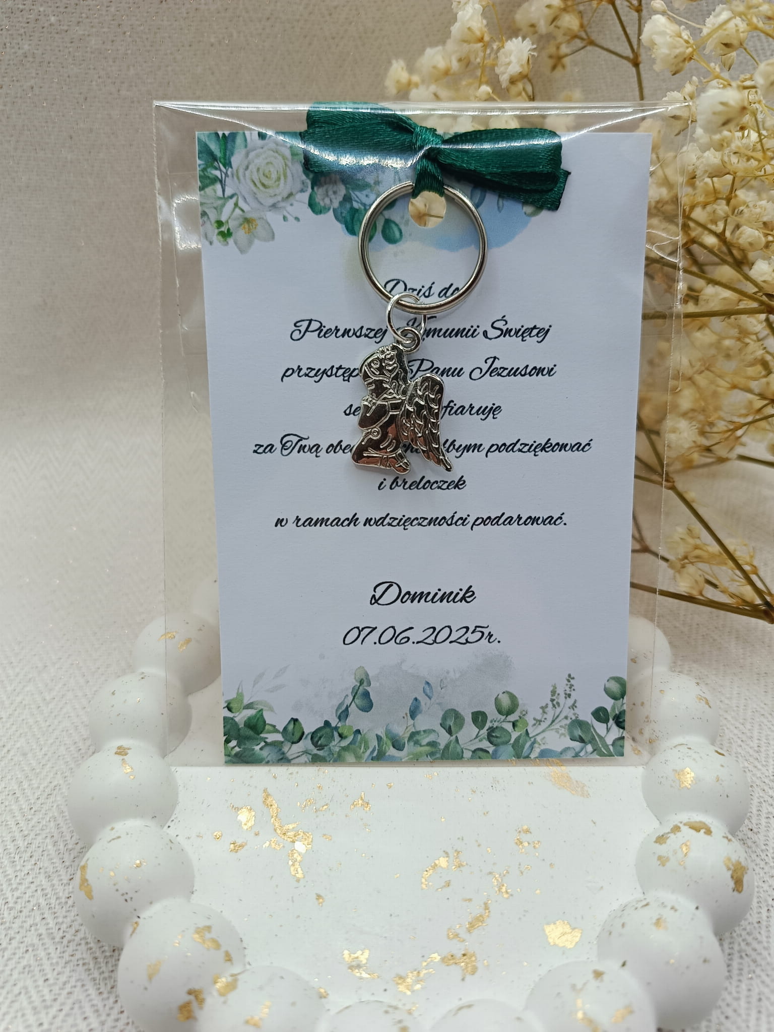 Breloczek srebrny aniołek - Podziękowanie na Pierwszą Komunię Świętą, Chrzest