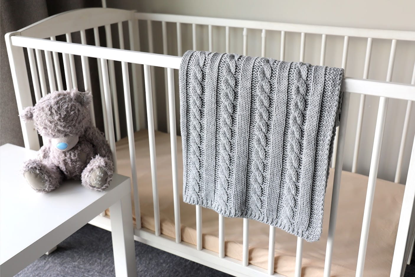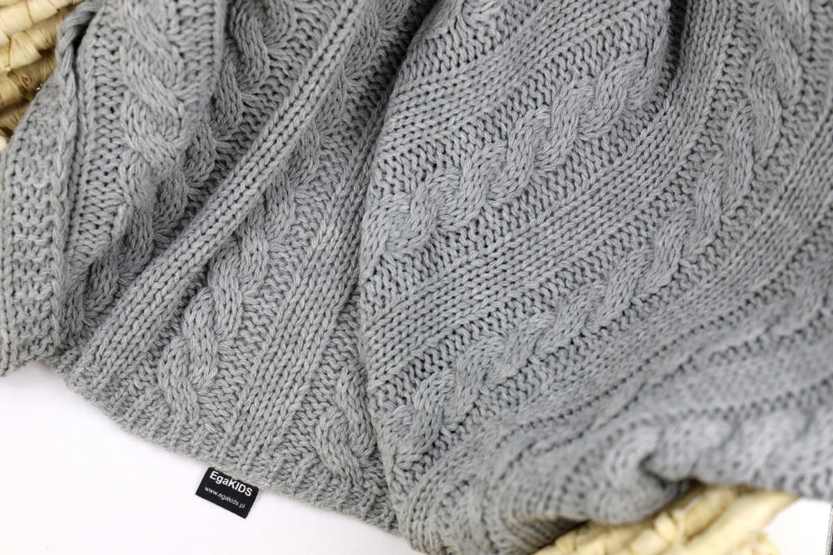 Kocyk dzianinowy warkocz - szary