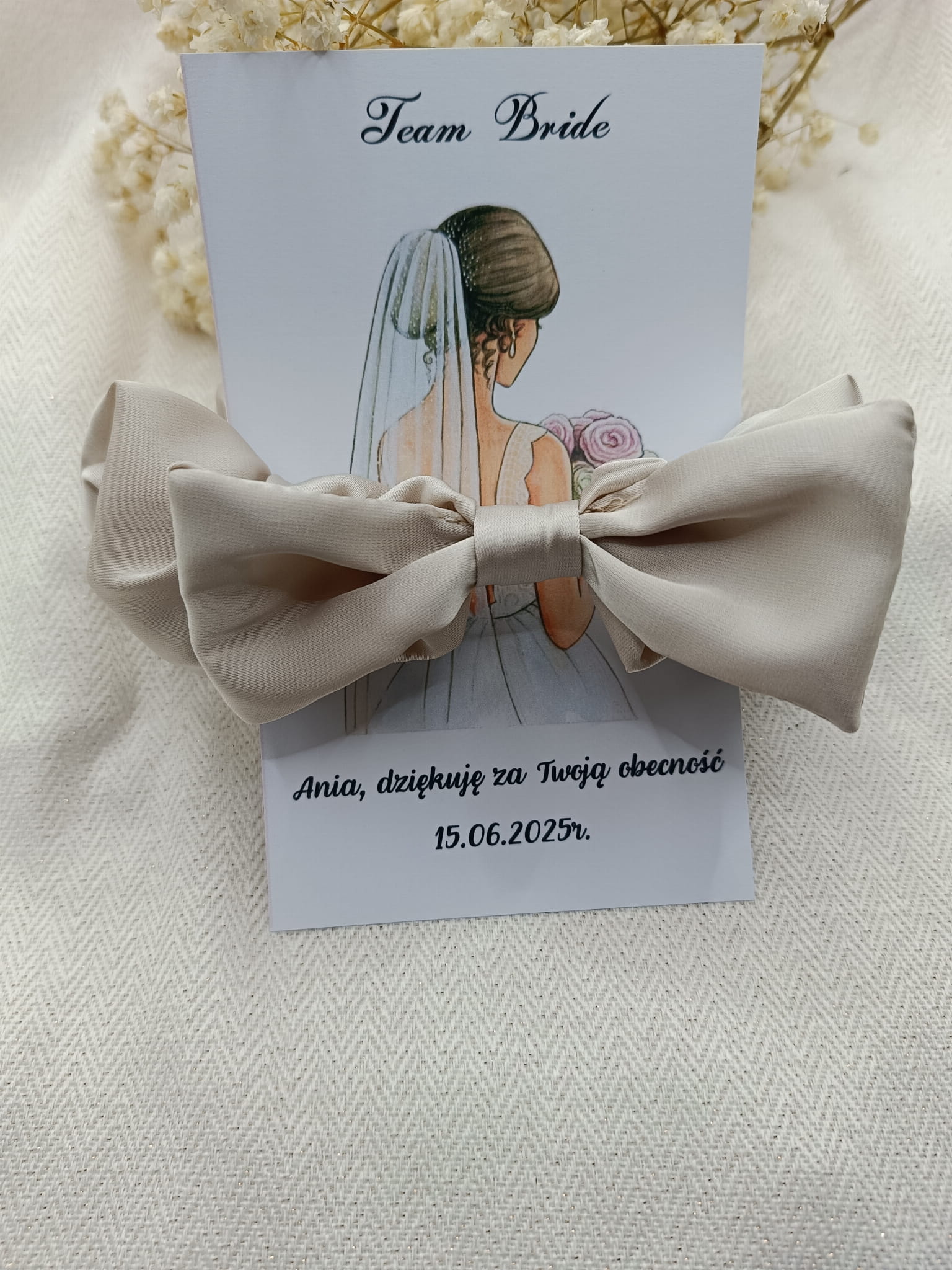 Podziękowania na wieczór panieński - gumka scrunchie z kokardą na karteczce (1)