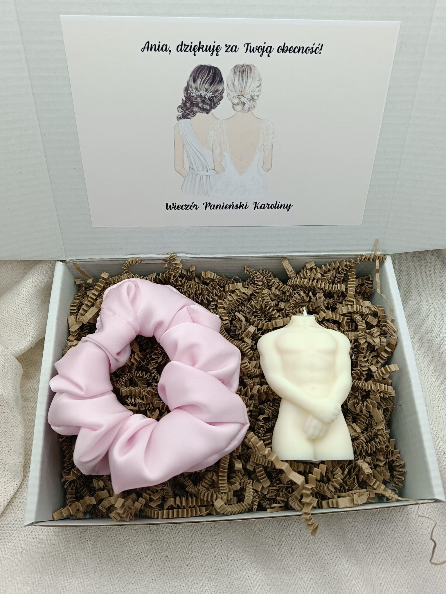 Zestaw prezentowy – scrunchie + świeca tors (idealny na wieczór panieński)