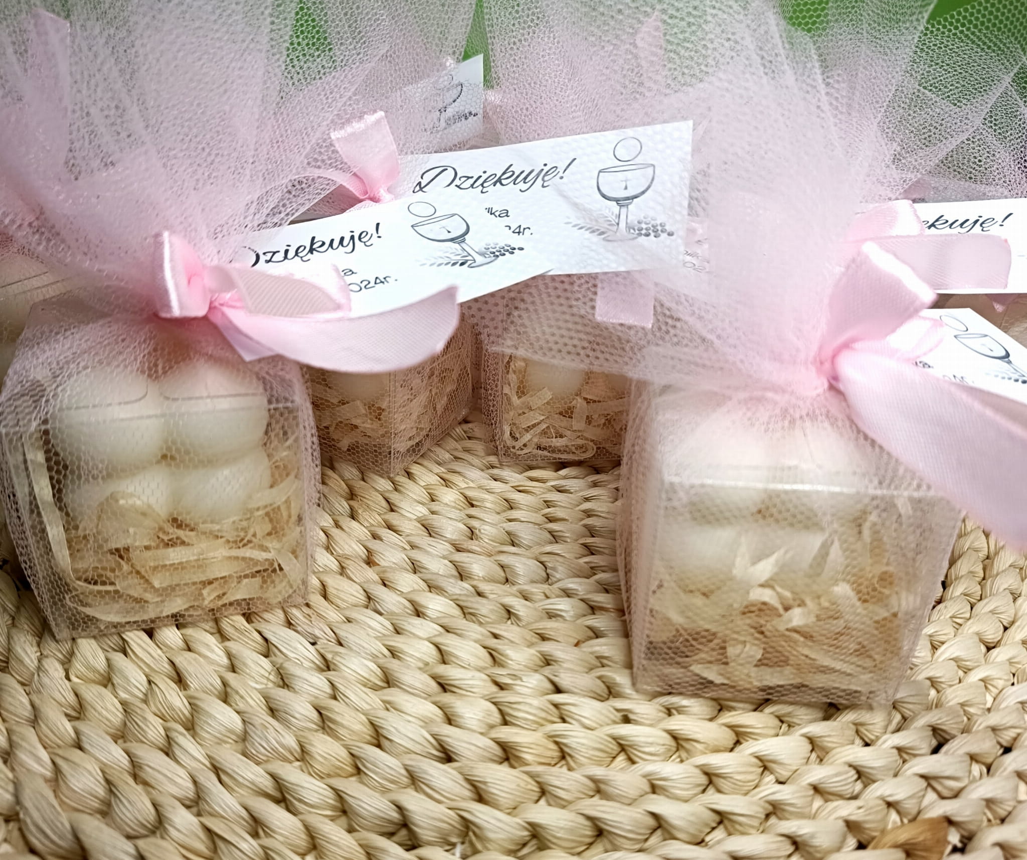 Do każdej świecy dołączamy ozdobną karteczkę – możesz wybrać jeden z naszych gotowych wzorów lub zamówić karteczkę z personalizacją, aby dopasować ją do charakteru uroczystości. Całość dopełnia satynowa wstążka w wybranym przez Ciebie kolorze, podkreślająca wyjątkowość produktu.