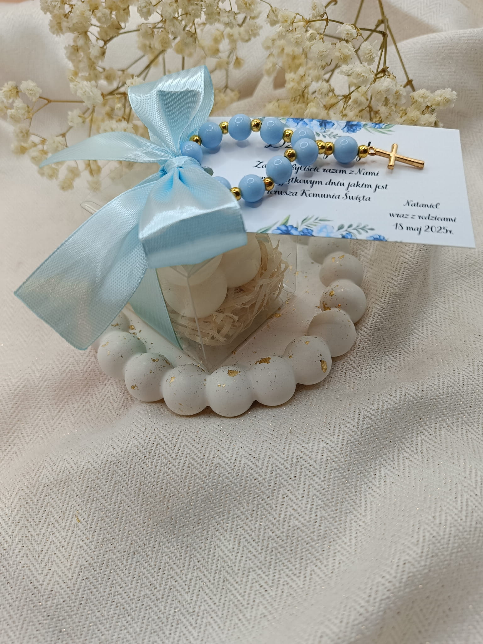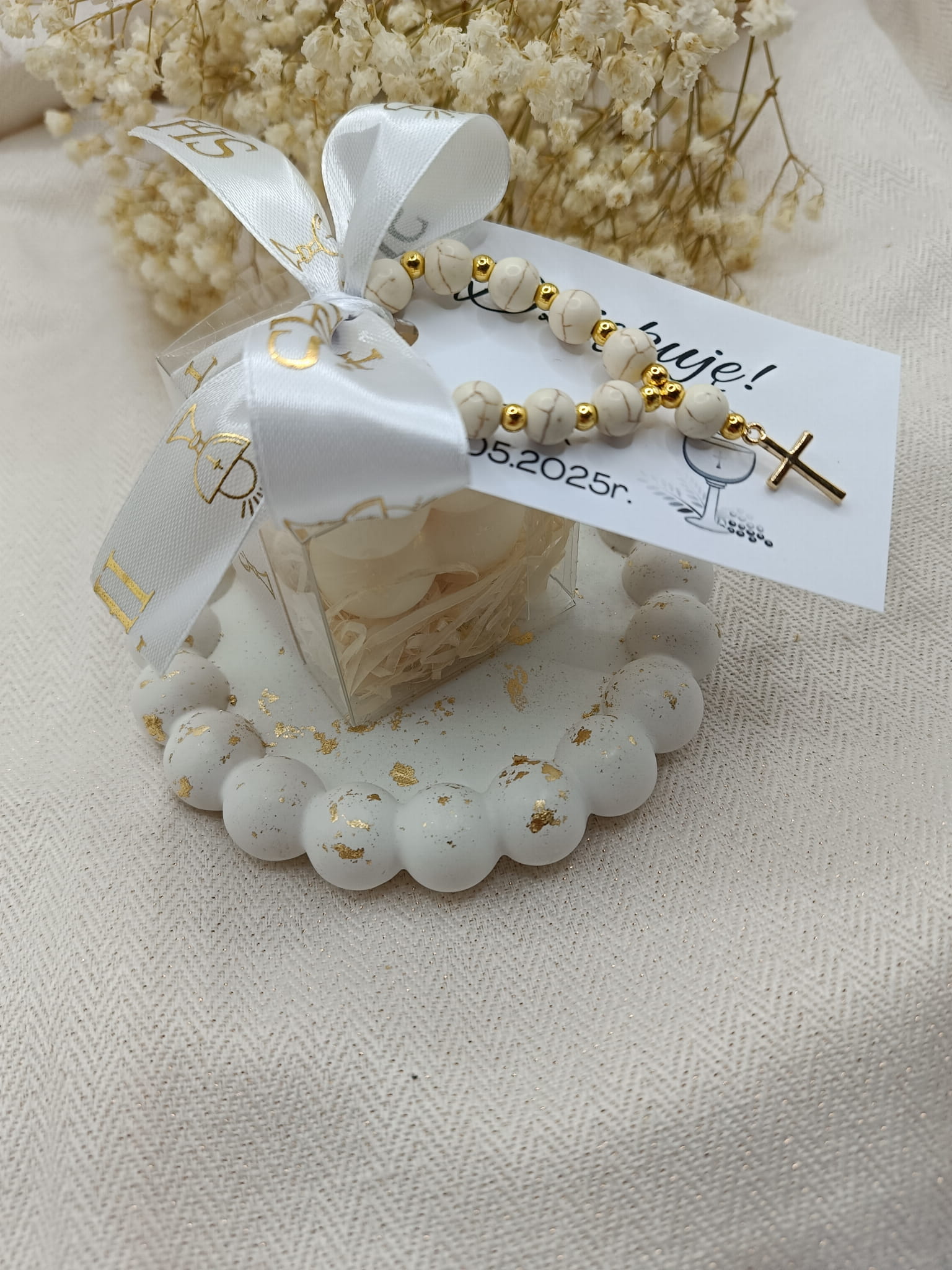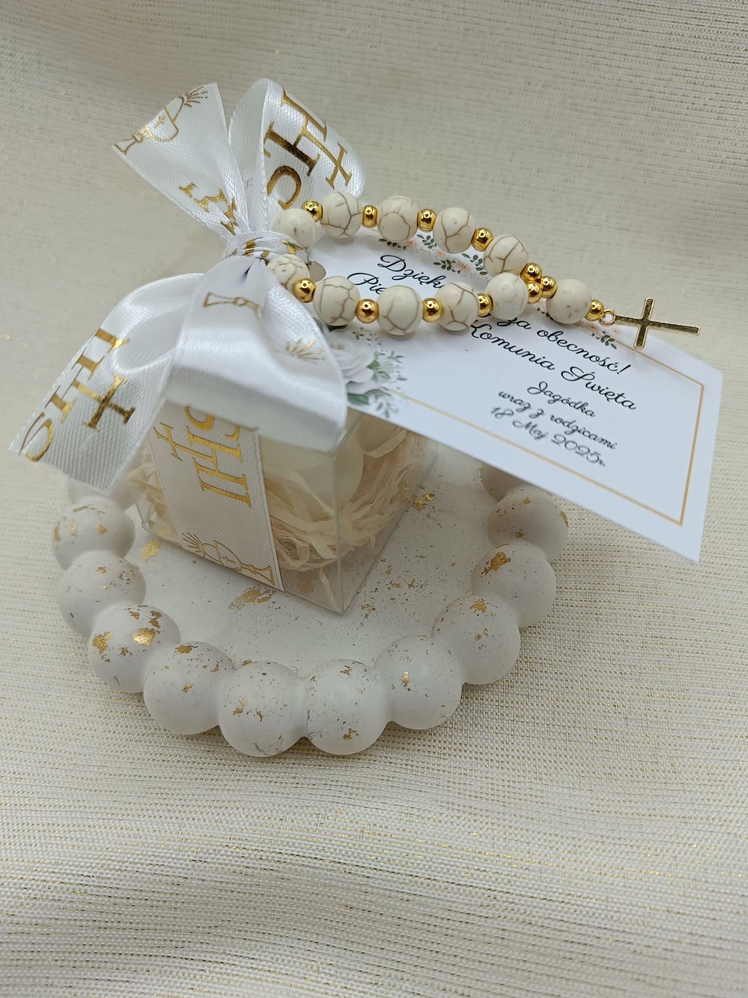 Świeca z różańcem - Podziękowanie na Pierwszą Komunię Świętą, Chrzest