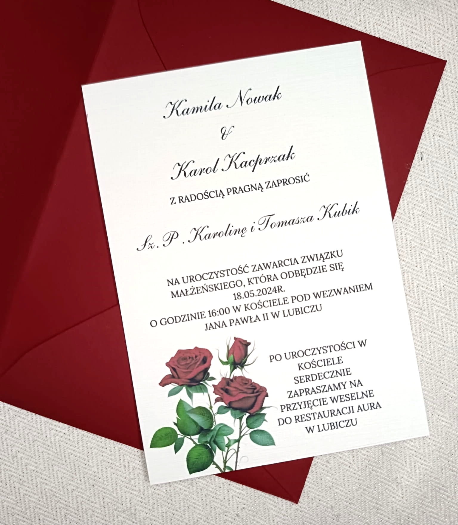 Zaproszenia jednokartkowe 14,8 × 10,5 cm z kopertą – eleganckie i personalizowane