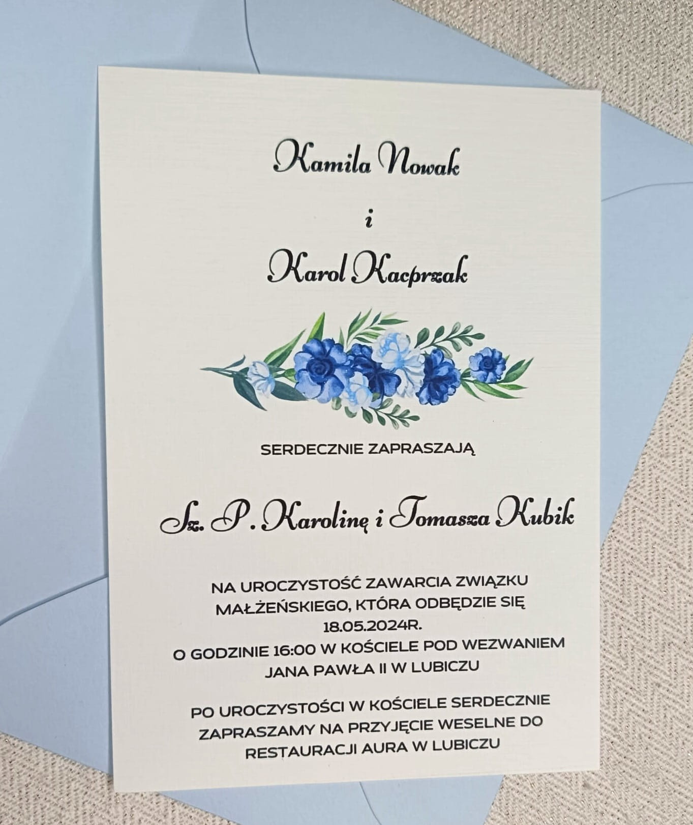 Personalizacja: wszystkie dane uroczystości zostaną nadrukowane na zaproszeniu