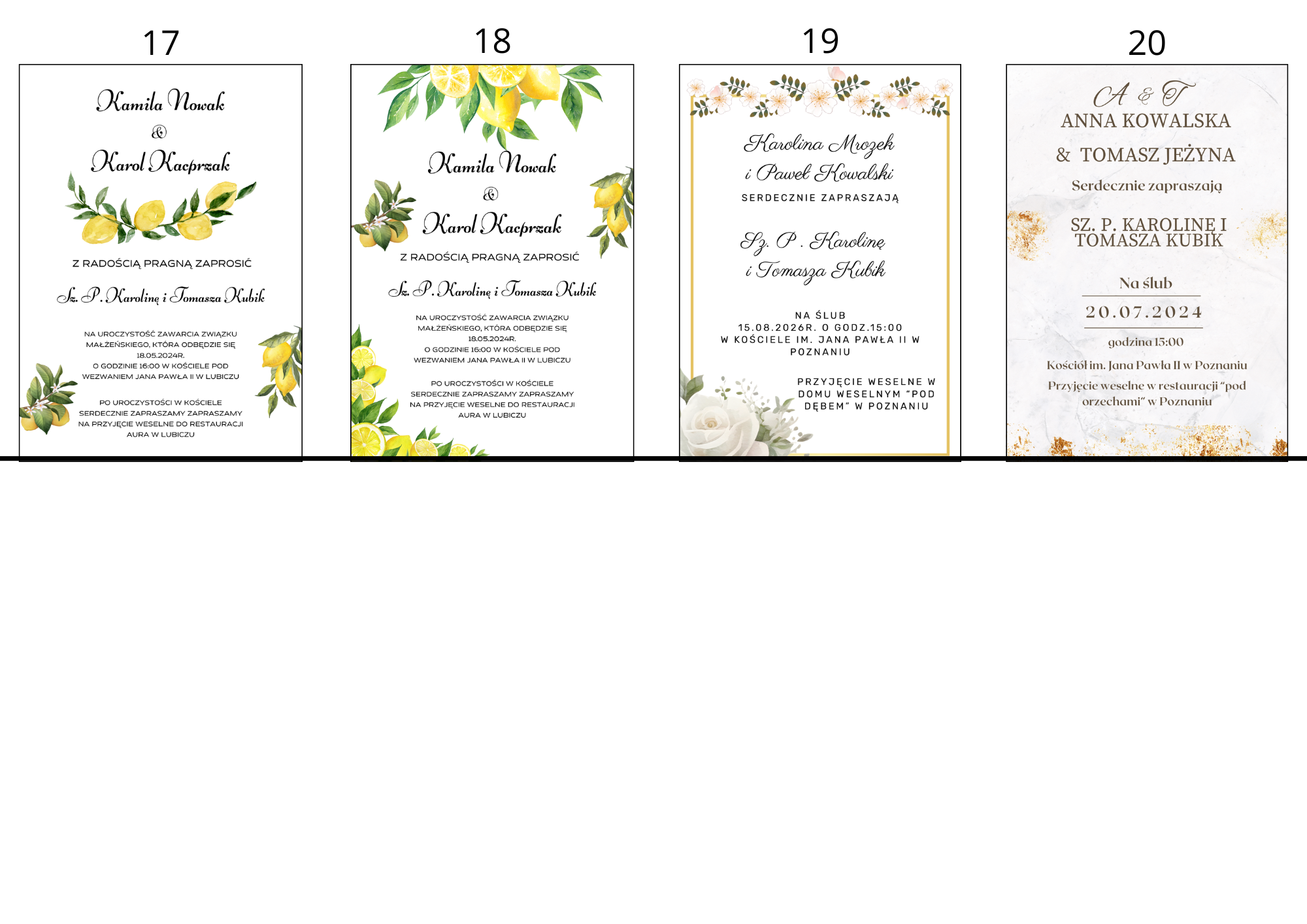 Personalizacja: wszystkie dane uroczystości zostaną nadrukowane na zaproszeniu